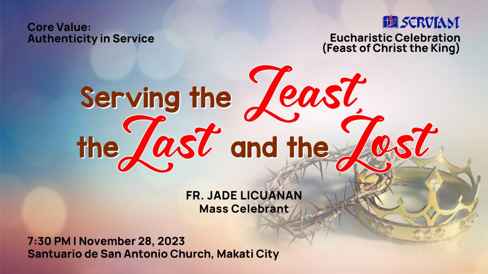 November 28, 2023 @ 7:00 pm - 9:00 pm CW/Advent Recollection Santuario de San Antonio Parish Santuario de San Antonio, Forbes Park, Makati, NCR, Philippines